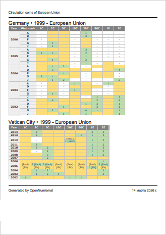 O OpenNumismat permite-lhe gravar a actual tabela de moedas com todos os filtros e ordenação aplicados num ficheiro separador em formato MS Excel, HTML ou CSV (nota: na implementação actual, as imagens não são exportadas).